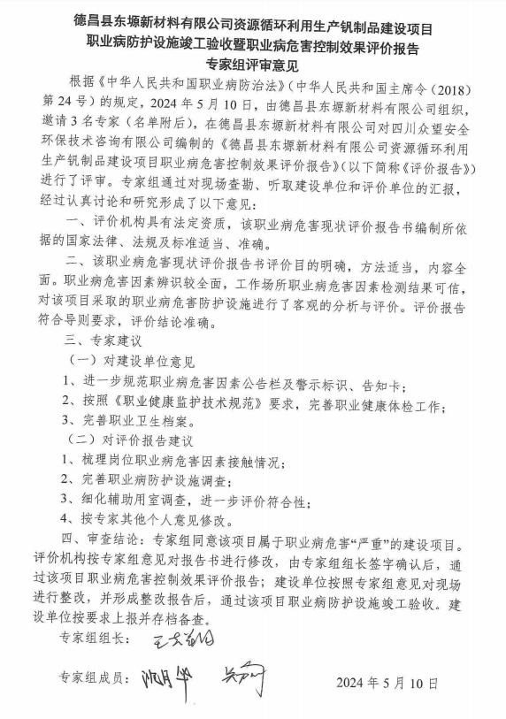 評價結(jié)論:根據(jù)對本項目現(xiàn)場調(diào)查、職業(yè)病危害因素檢測結(jié)果和項目相關資料的綜合分析,本項目當前(試運行階段)基本符合國家和地方對職業(yè)病防治方面法律、法規(guī)、標準的要求,本項目已具備職業(yè)病防護設施竣工驗收的條件。在生產(chǎn)狀況正常,職業(yè)病危害防護設施運行有效,工人佩戴合理有效的個體防護用品,其實際接觸的職業(yè)病危害因素的濃度/強度能夠控制在職業(yè)接觸限值內(nèi),且采取了控制效果評價報告所提對策措施和建議的情況下,符合國家和地方對職業(yè)病防治方面法律、法規(guī)、標準的要求。 建議:①各中控室(釩鐵車間中控室、煤氣發(fā)生崗中控室、廢水處理中控室、鍋爐控制室)應安裝功率符合要求的照明燈具,燈具損壞時應及時更換,并督促作業(yè)人員在自然采光不足時打開照明燈具,并及時清理燈具上的灰塵,防止低照明對作業(yè)人員眼睛的損害;②盡快針對本項目職業(yè)病危害事故組織職業(yè)病危害事故應急救援演練;③建議用人單位按照《職業(yè)健康監(jiān)護技術規(guī)范》(GBZ188-2014)的規(guī)定組織安排職業(yè)健康體檢。 |