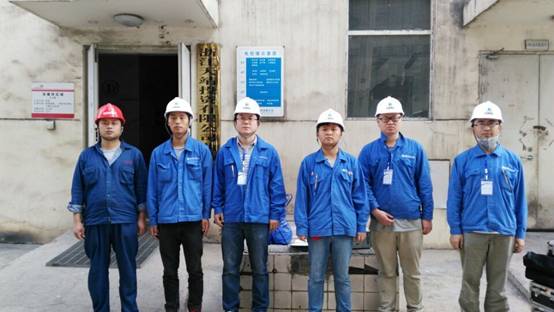 圖2 檢測(cè)人員現(xiàn)場(chǎng)檢測(cè)照片 (解洪亮:右一 檢測(cè)證書號(hào) A01(J)15101403,李棟:左二 檢測(cè)證書號(hào) A01(J)15101405) |